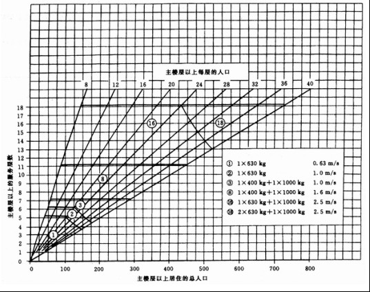 4.2.4 电梯的规格和数量应符合附录A~F中各图表的规定。这些图表是根据一天内上行高峰期的交通需要和4.2.2、4.2.3条及表1~3中规定的指标制成的。